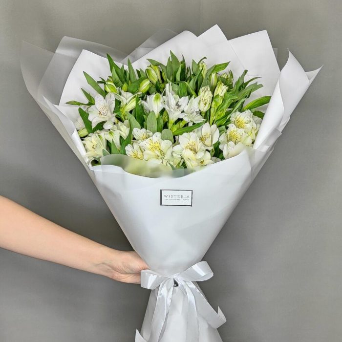 Букет из 15 белоснежных альстромерий “Жемчужина”