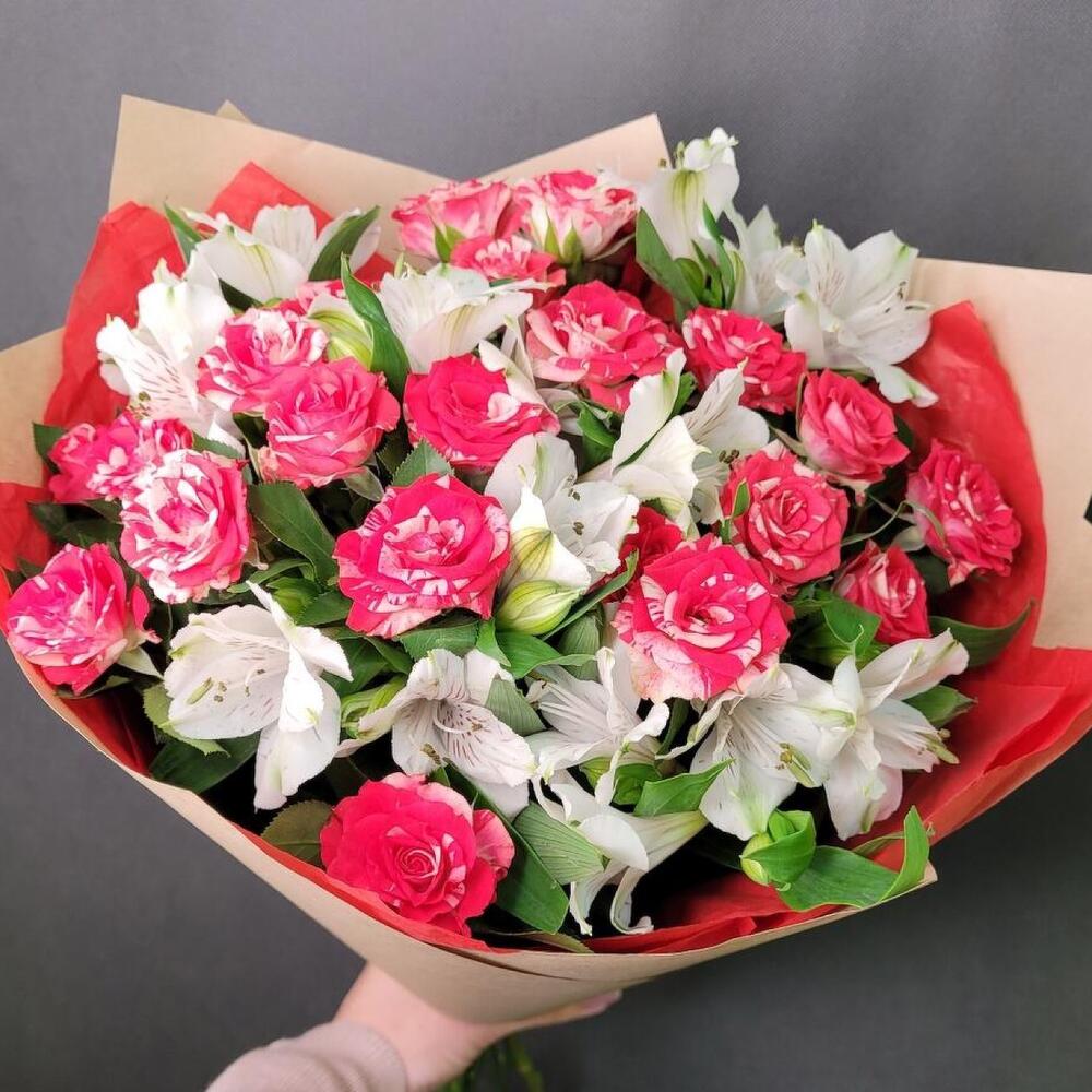 Букет роз и альстромерии «Приятные моменты»
