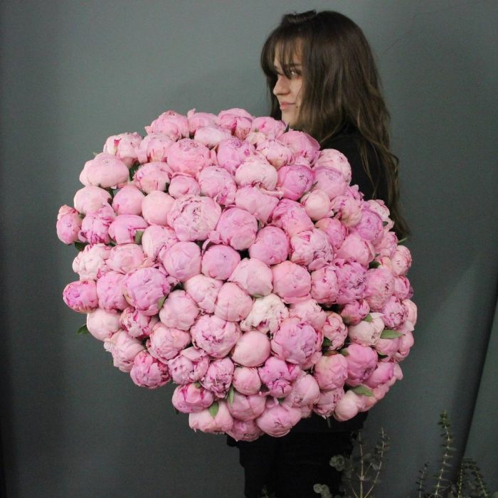 101 пион в многослойной упаковке