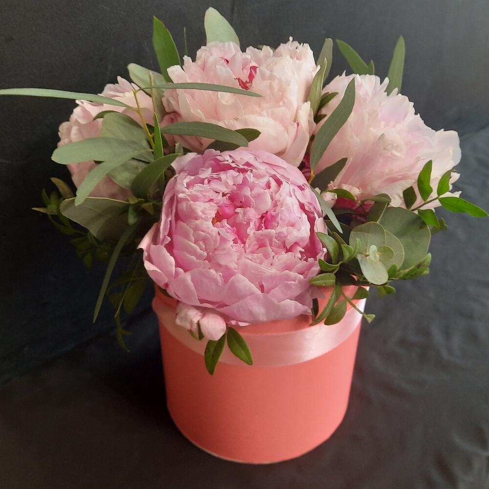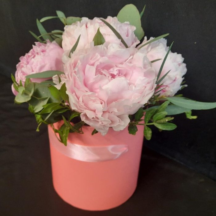 Пионы Сара Бернар в шляпной коробке