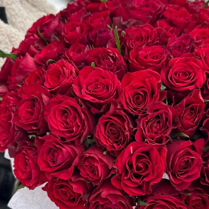 Роза красная – 45 шт.Лента атласная – 1 шт.Коробка шляпная – 1 шт.