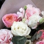 Авторский букет из французских и пионовидных роз с эвкалиптом
