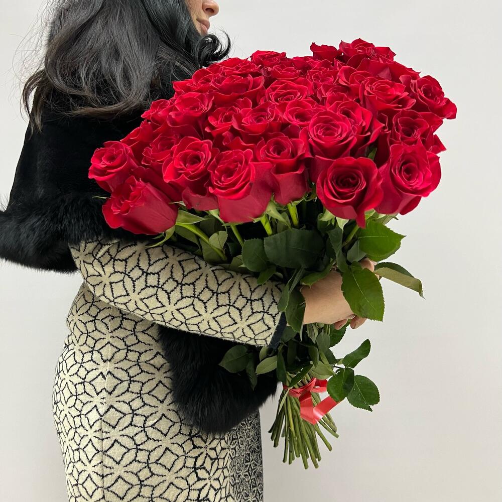 Лента красная – 1 шт.Роза Эквадор – 35 шт.
