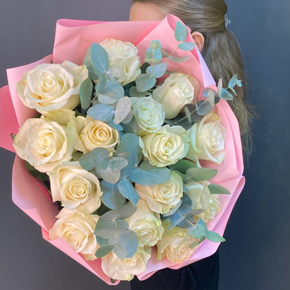 Букет белых Роз и Эвкалипта