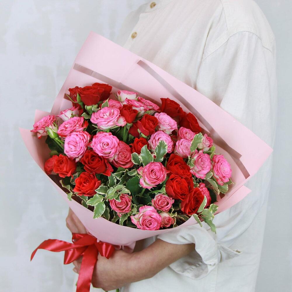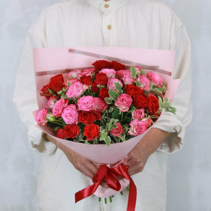 роза кустовая кения 40 см – 11 шт.Питтоспорум – 1 шт.Пленка – 2 шт.Лента – 1 шт.