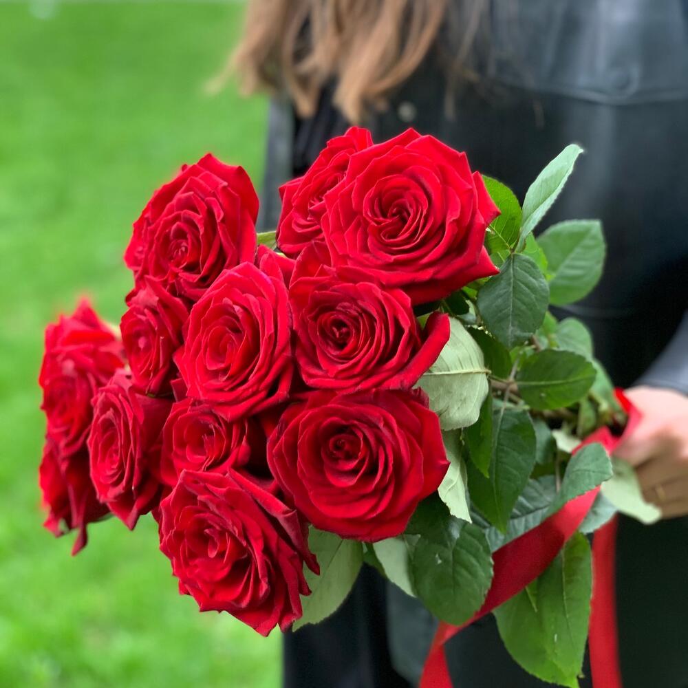 Лента атласная – 1 шт.Красная роза – 15 шт.
