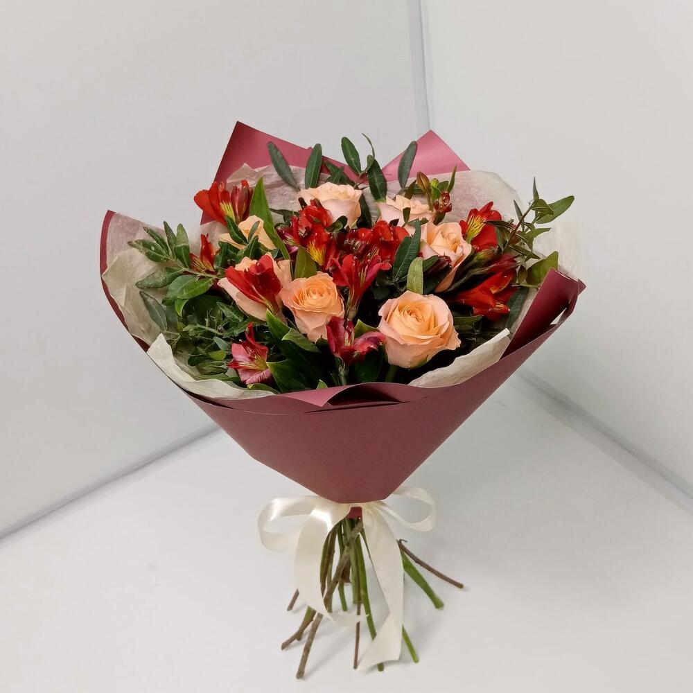 Букет из роз и Альстромерии