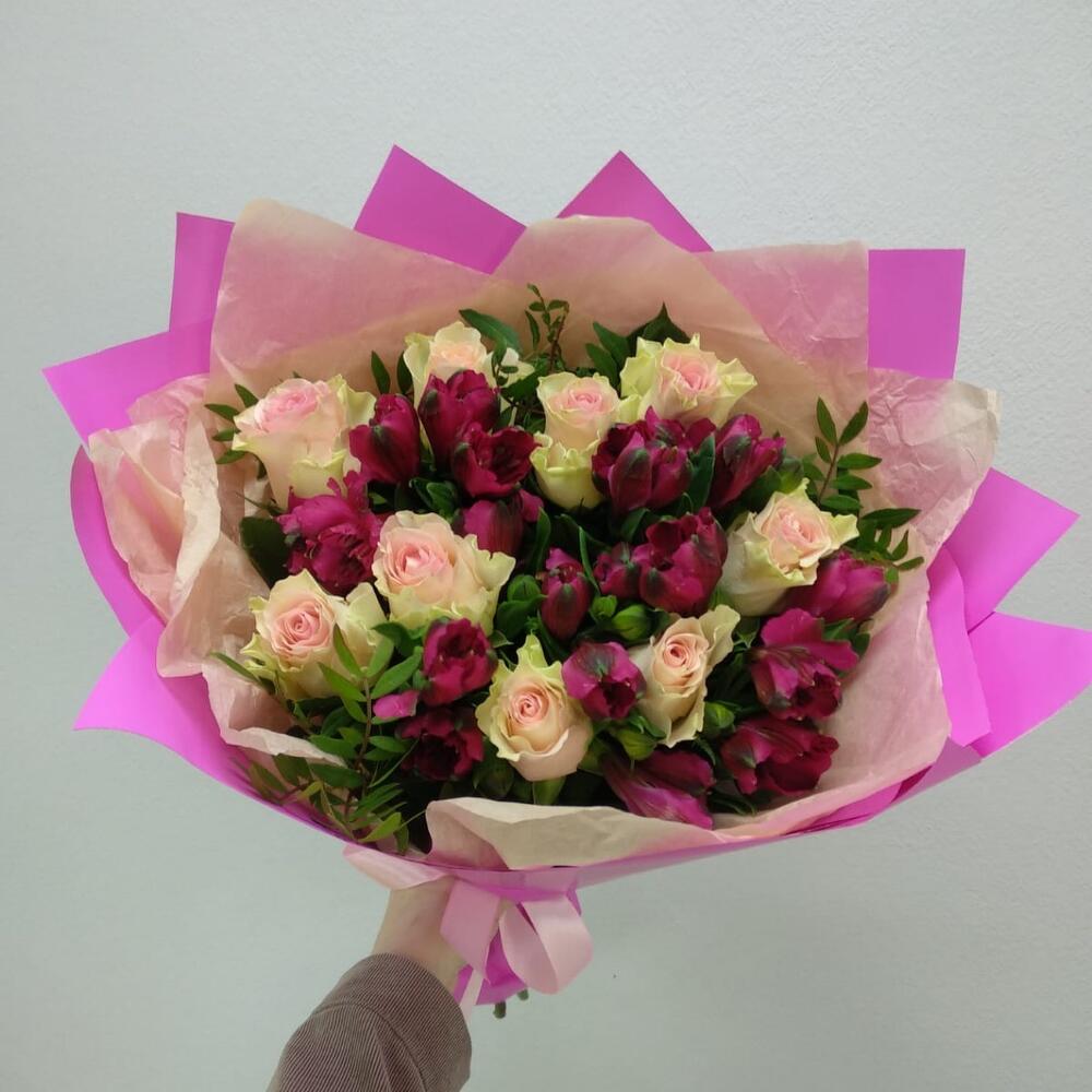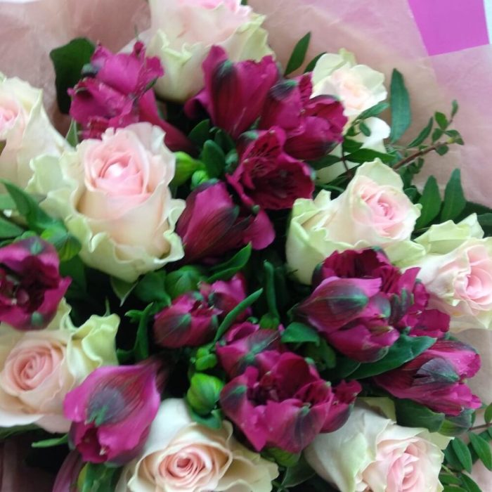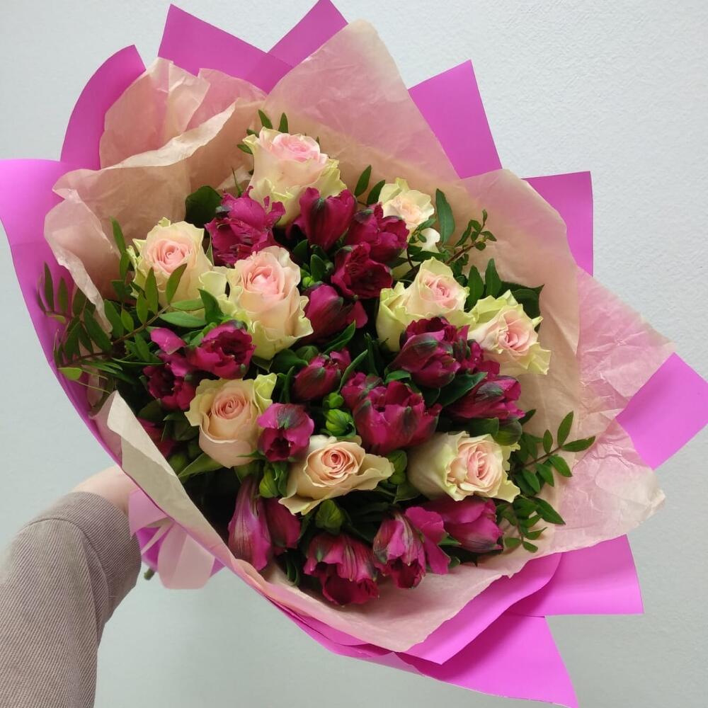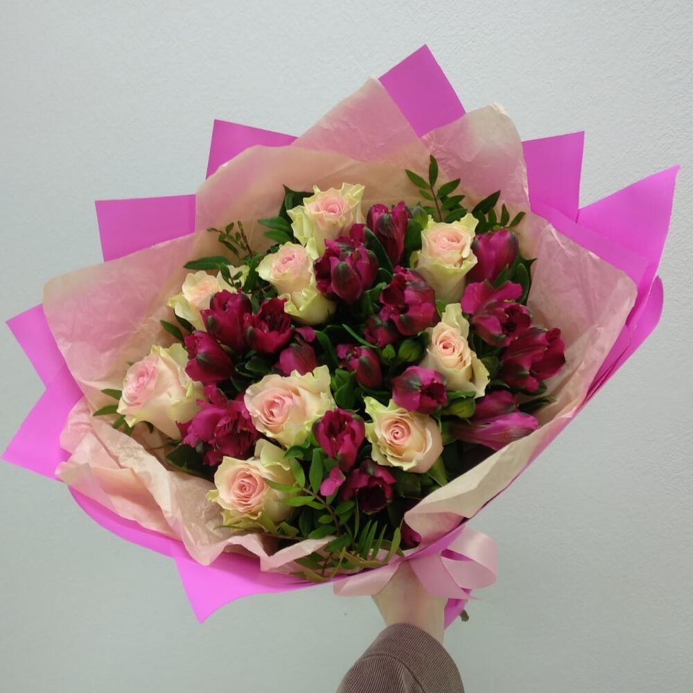 Букет из роз и альстромерий