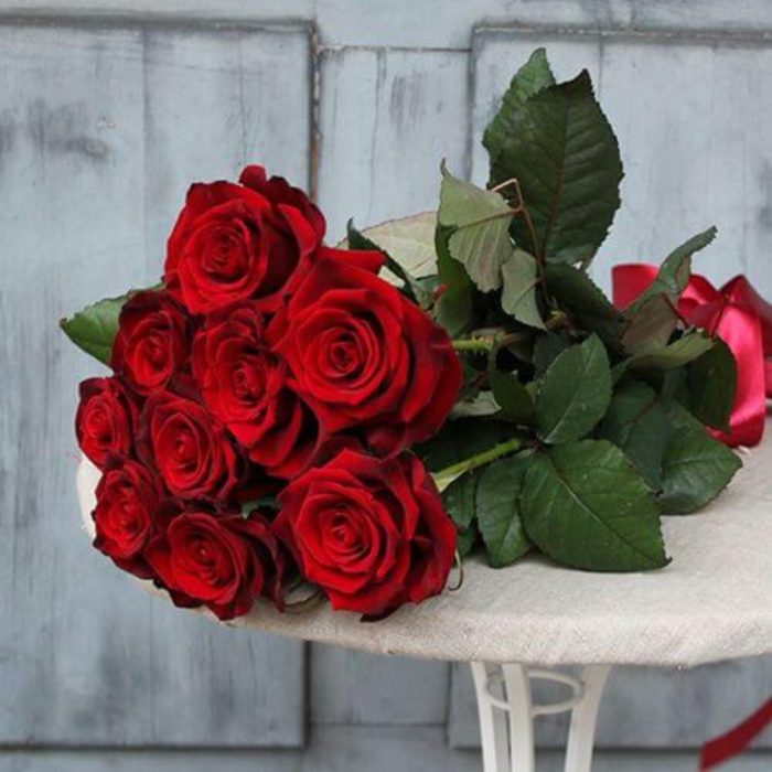 Небольшой букет комплимент из 9 красных роз выразит Ваши чувства искренние чувства.