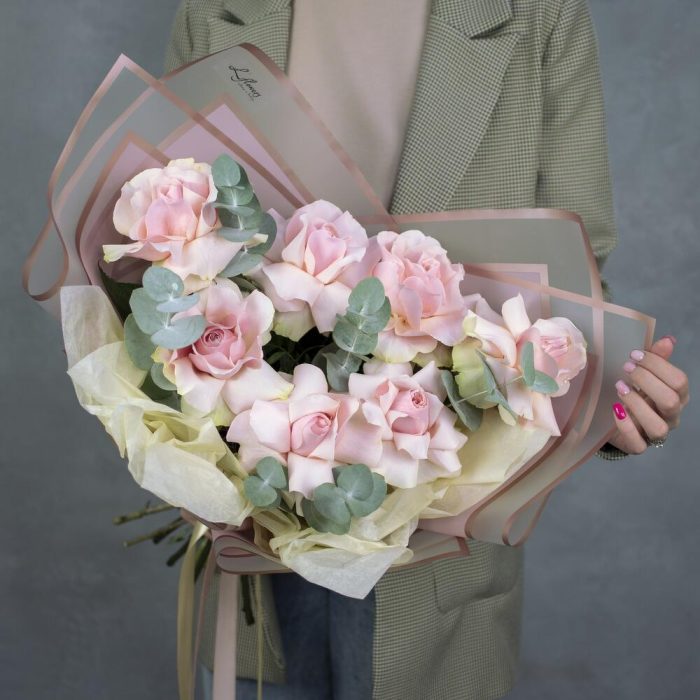 Роза французская – 7 шт.Эвкалипт – 2 шт.