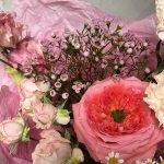 Букет с пионовидной розой, матиолой и гвоздикой