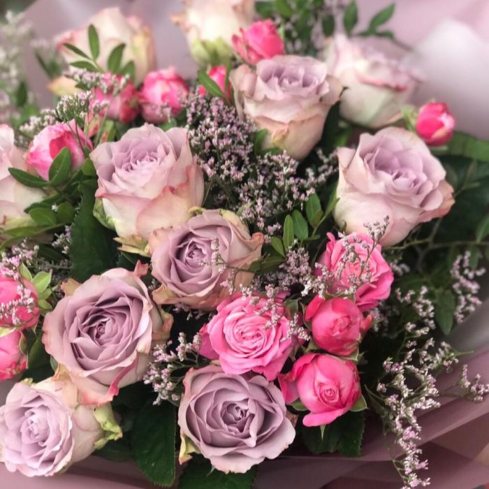 Гвоздики, Кустовые розы, Лизиантусы, Пионовидные розы, Розы