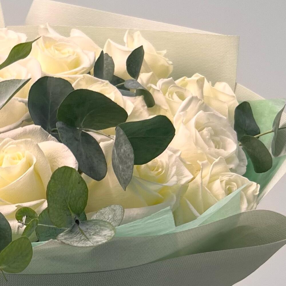 Голландская роза – 21 шт. Эвкалипт – 4 шт.