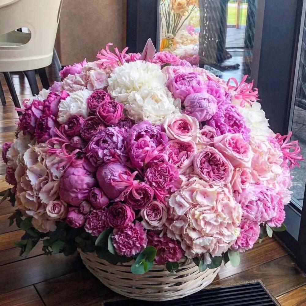 Пион – 15 шт.Гортензия – 10 шт.роза ассорти – 22 шт.Корзина плетеная – 1 шт.Лента атласная – 1 шт.Открыточка с вашими пожеланиями – 1 шт.хорошее настроение – 100 шт.инструкция по уходу за цветами – 1 шт.Кризал – 1 шт.
