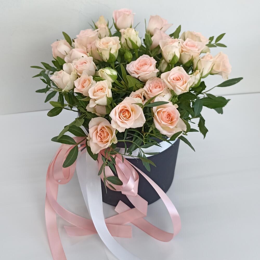 Роза кустовая – 7 шт.Оазис – 1 шт.Фисташка – 2 шт.Коробка – 1 шт.