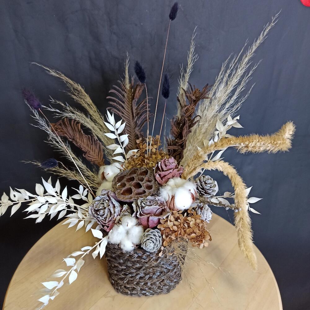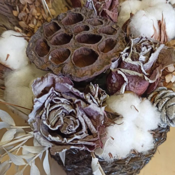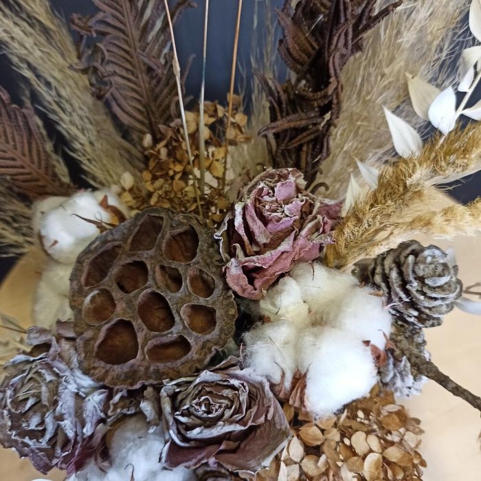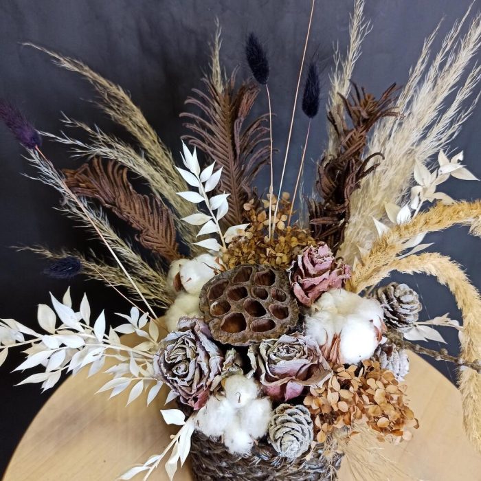 “Атлас☁️” – цветочная композиция с зефиром в деревянном ящике
