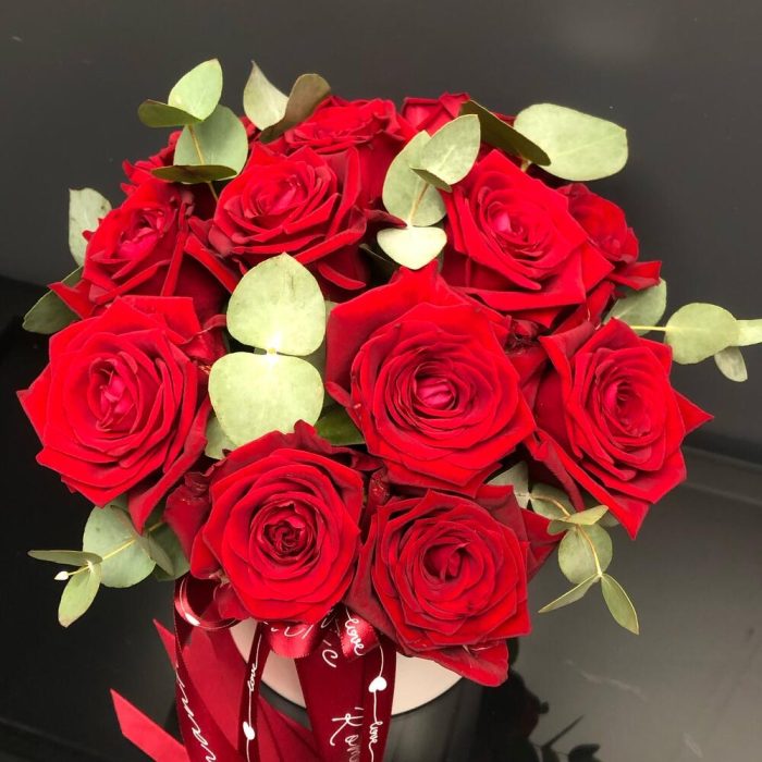 Розы с эвкалиптом в коробочке️
