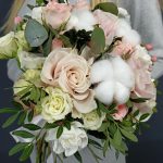 Розовый жемчуг Букет из французких роз и пион видных роз с хлопком